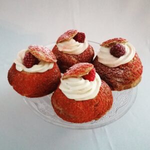 Valmistame ettetellimise peale krõbedaid profitroole vahustatud keedukreemi ja hapuka vaarikalisandiga....